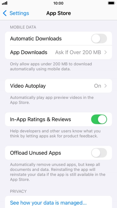 Press the indicator next to "Automatic Downloads" to turn the function on or off.