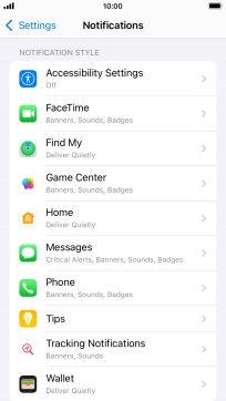 Press the indicator next to "Allow Notifications" to turn notifications for the selected application on or off.