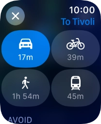 Turn the Digital Crown to see the suggested routes.
