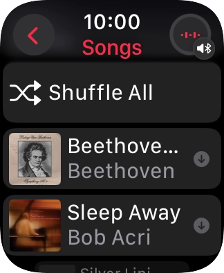 On your phone: Press the add icon to transfer the audio files to your Apple Watch.