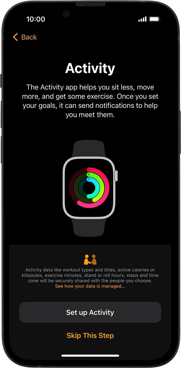 On your phone: Follow the instructions on the screen to select the required activity settings or press Skip This Step.