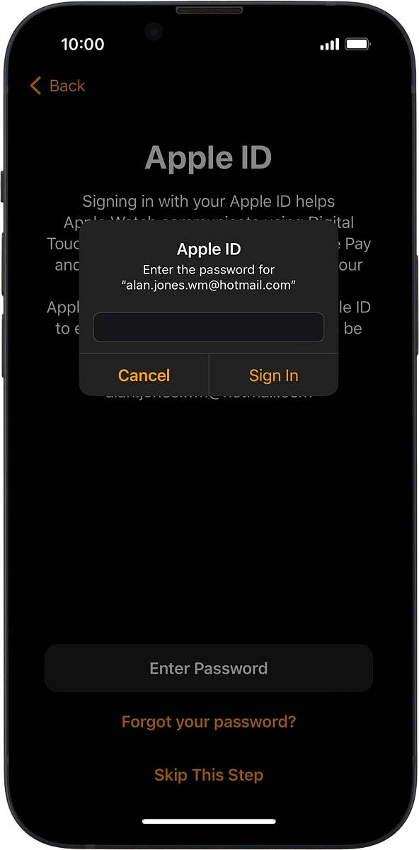 On your phone: Key in the password for your Apple ID and press Sign In.