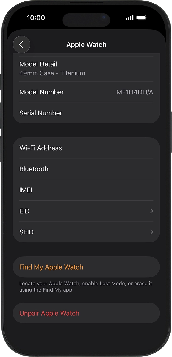 1. Find "Unpair Apple Watch"