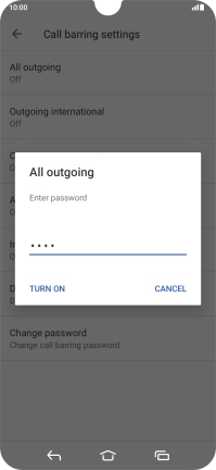 Key in your barring password and press TURN ON. The default barring password is 0000.