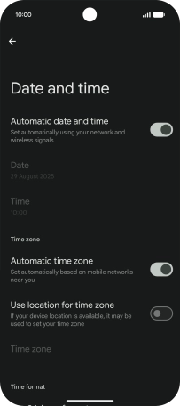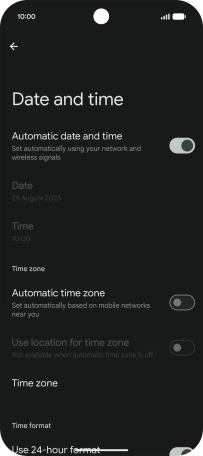 Press the indicator next to "Automatic date and time" to turn on the function.