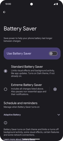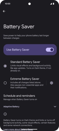Press the indicator next to "Use Battery Saver" to turn on the function.
