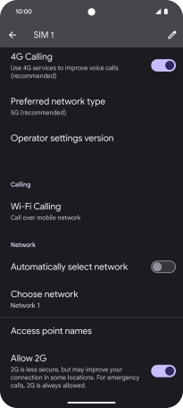 Press the indicator next to "Automatically select network" to turn on the function.