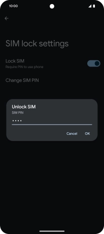 Press the indicator next to "Lock SIM" to turn the function on or off.