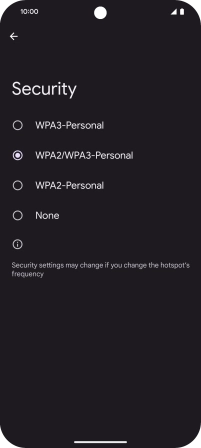 Press WPA3-Personal to password protect your Wi-Fi hotspot.