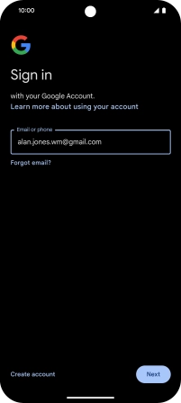 If you don't have a Google account, press Create account and follow the instructions on the screen to create an account.