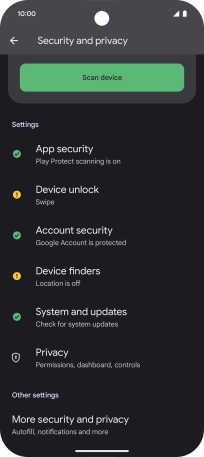 Press Security and privacy.