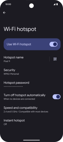 Press the indicator next to "Use Wi-Fi hotspot" to turn on the function.