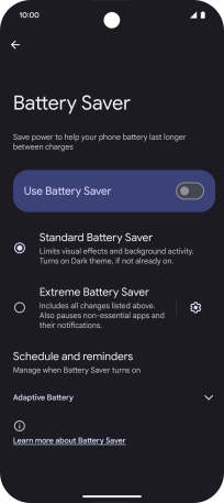 Press the indicator next to "Use Battery Saver" to turn on the function.