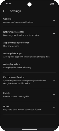 If you turn on limited update of apps via mobile network, your most used apps are automatically updated via the mobile network when no Wi-Fi networks are within range.