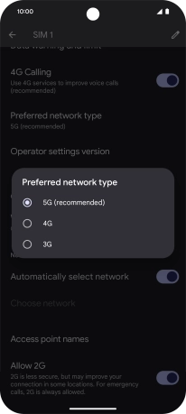 Press Preferred network type.