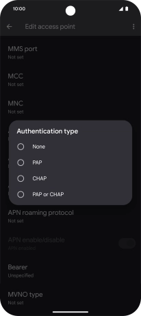 7. Enter APN type