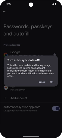 Press the indicator next to "Automatically sync app data" to turn the function on or off.