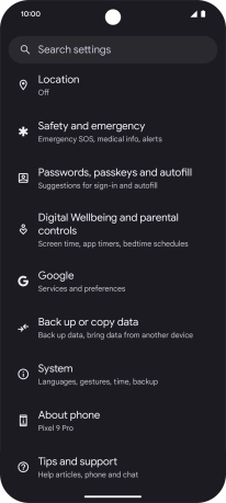 Google Pixel 9 Pro - Select settings for Find My Device | Vodafone Ireland