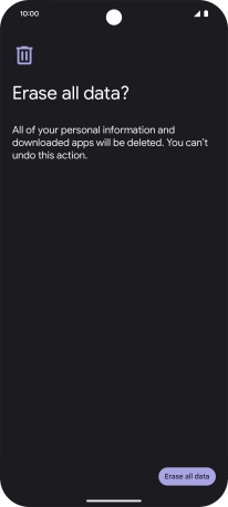 Press Erase all data. Wait a moment while the factory default settings are restored. Follow the instructions on the screen to set up your phone and prepare it for use.
