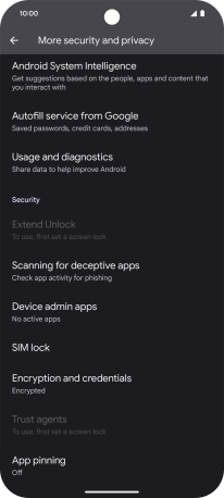 Press Security and privacy.