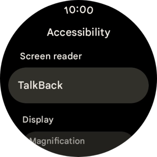 With TalkBack turned on, selected menu items will be highlighted and described via speech by your smartwatch.