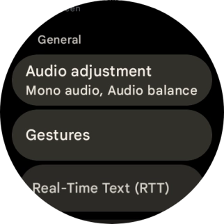 You can select additional settings for accessibility functions, such as changing a connected audio device to mono, setting the left/right audio balance of the connected Bluetooth audio device or setting specific accessibility functions that can be activated by pressing the keys on your smartwatch.