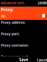 Highlight Proxy and press Navigation key right or Navigation key left to turn on use of proxy.