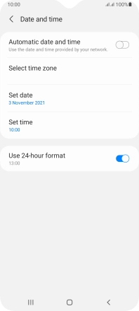 Press the indicator next to "Automatic date and time" to turn on the function.
