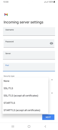 Press the field below "Server" and key in the name of your email provider's incoming server.