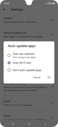 To turn on automatic update of apps using Wi-Fi, press Over Wi-Fi only.