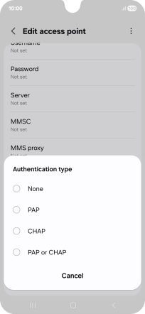 7. Enter APN type