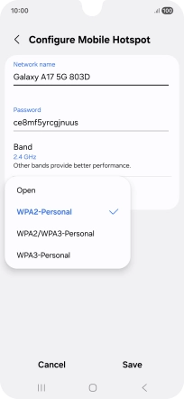 Press WPA3-Personal to password protect your Wi-Fi hotspot.