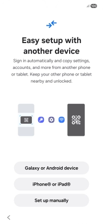 Press the required setting to transfer content from another device or press Set up manually.