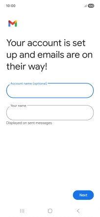 If this screen is displayed, you email account has been recognised and set up automatically. Follow the instructions on the screen to key in more information and finish setting up your phone.