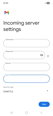 Press the field below "Server" and key in the name of your email provider's incoming server.