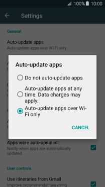 Press Auto-update apps over Wi-Fi only to turn on the function.