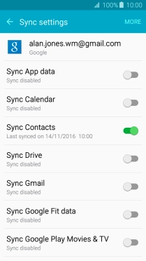 Press the indicator next to "Sync Contacts" to turn on the function.