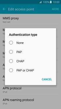 7. Select APN type