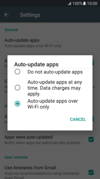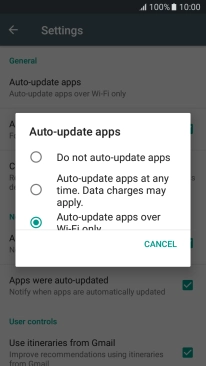 Press Auto-update apps over Wi-Fi only to turn on the function.