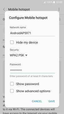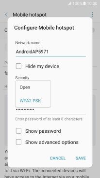 Press WPA2 PSK to password protect your Wi-Fi hotspot.