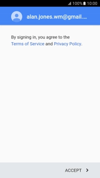 Press ACCEPT and follow the instructions on the screen to select settings for your Google account.