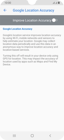 If you press the indicator next to "Improve Location Accuracy" to turn off the function, your phone can find your exact position using the GPS satellites but it may take longer as there is no access to supplementary information from the mobile network or nearby Wi-Fi networks.