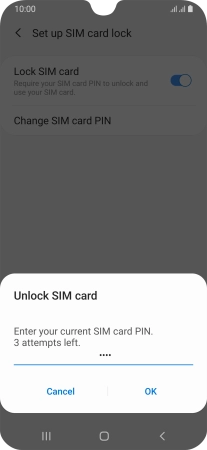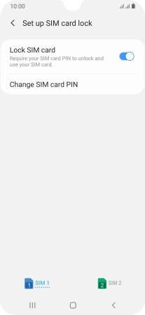 Press the indicator next to "Lock SIM card" to turn the function on or off.