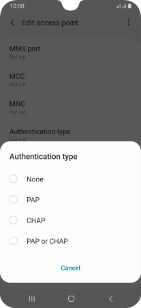7. Enter APN type
