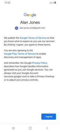 Press I agree and follow the instructions on the screen to select settings for your Google account.
