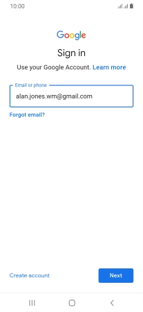 If you don't have a Google account, press Create account and follow the instructions on the screen to create an account.