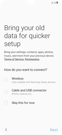 Press the required transfer method and follow the instructions on the screen to transfer content from another phone.