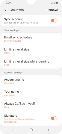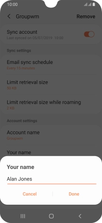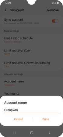 Key in the required name for the email account and press Done.
