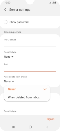 Press When deleted from Inbox to delete email messages on the server when you delete them on your phone.