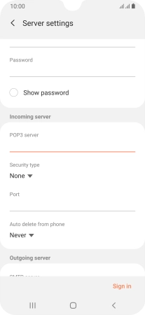 Press the field below "POP3 server" and key in the name of your email provider's incoming server.
